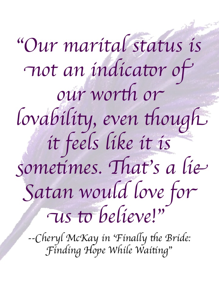 I pray that my story encourages you in your waiting, and that you will know you are not alone in what you feel. I also recently started a Pinterest board, hoping to collect various quotes, articles and such that could be of encouragement to singles: