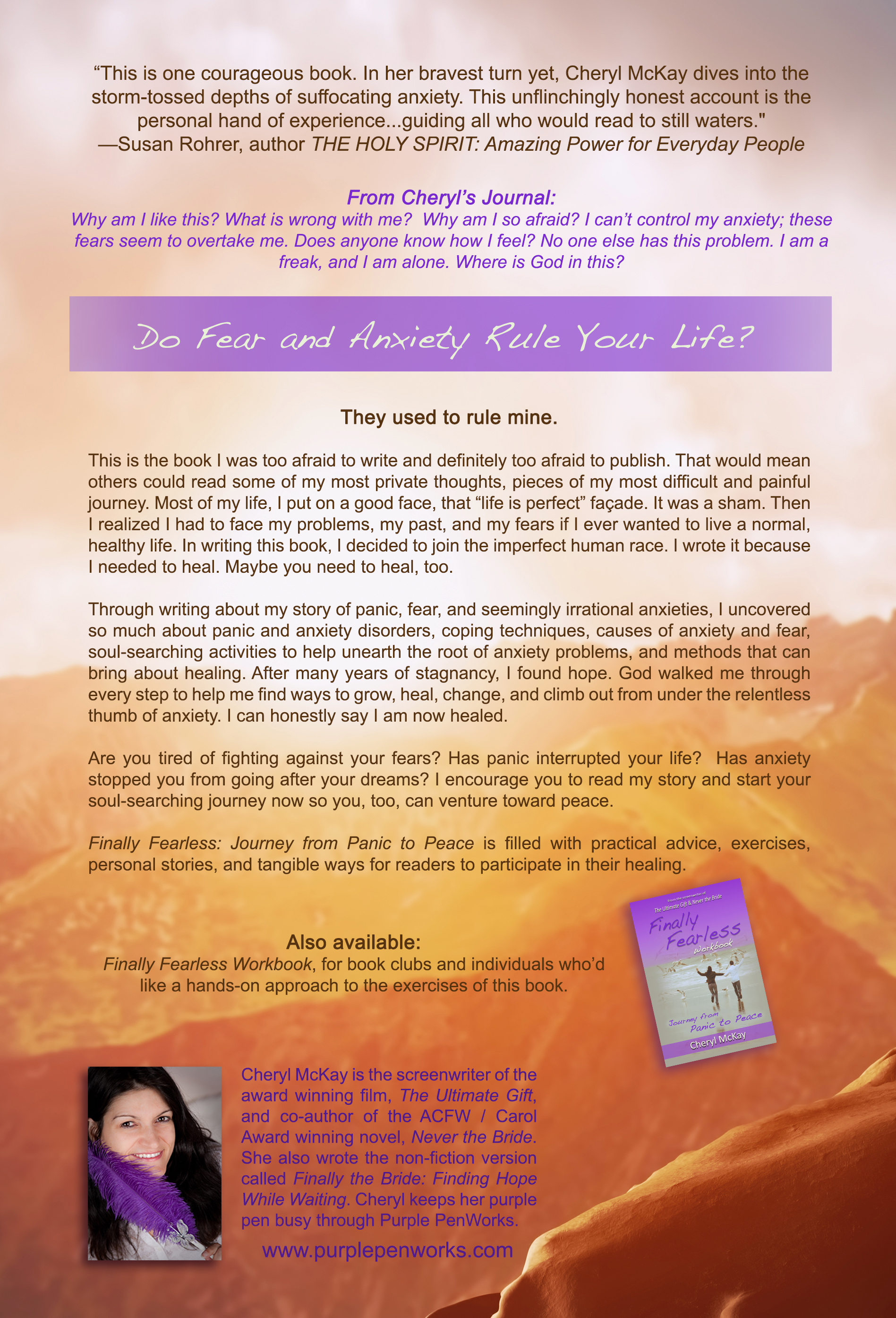 Get the workbook that accompanies this book. The Finally Fearless Workbook is a great tool for church groups, book clubs, or individuals who want to play an active role in their healing from fear and anxiety.