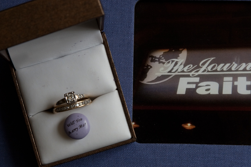 As you know from the proposal, Chris used purple M&Ms to pop the question, Will You Marry Me? Just like in the book. But what he added of his own to those M&Ms were the phrases “I choose you!” and “I want you!” Quite honestly, I had never really felt chosen before; I had never felt wanted. And I definitely had never heard the words “I love you” from a man before. Not in all these years. But what a difference it was, to actually be pursued by someone who cared so much about me (rather than what always happened before for the past decade of me liking others who didn’t “see me that way.” I can’t tell you how many times Chris has expressed his gratefulness to God for “blinding” all the other guys to me so I could wait for him. We both felt like we constantly had some kind of “repellant” on us preventing anyone from seeing we were valuable lifelong mates. But now, we’re glad that happened and that we have found each other at the end of our wait.)