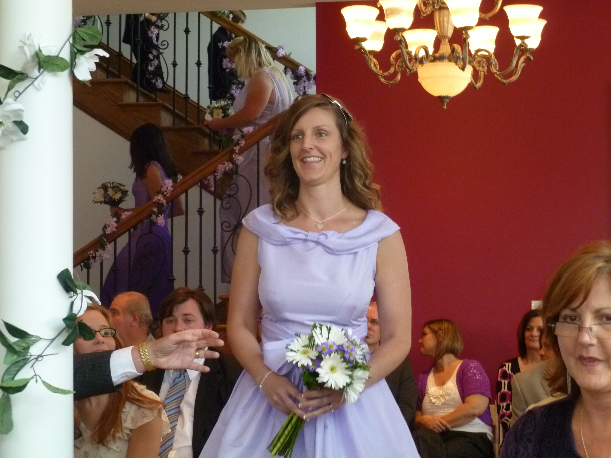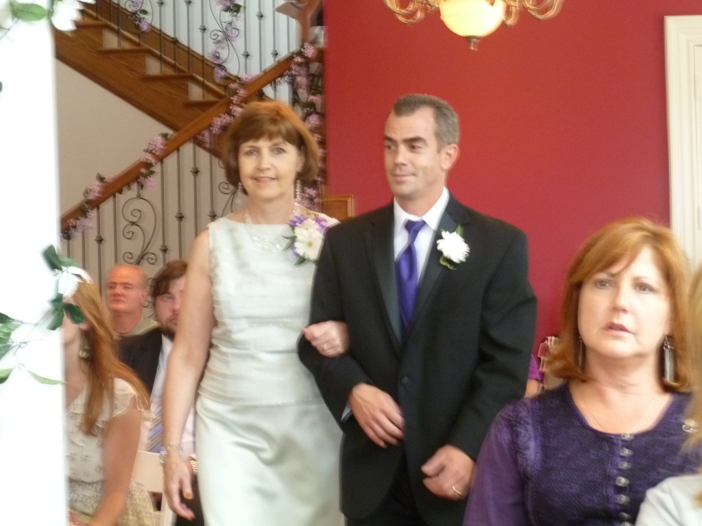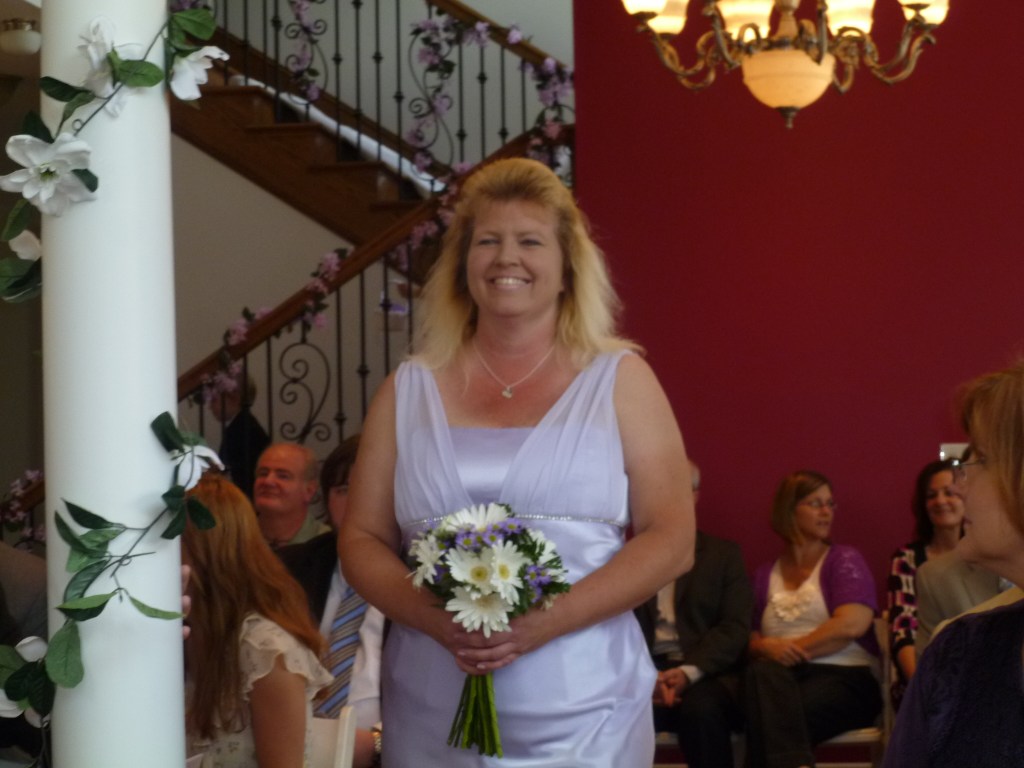 And my Uncle Bill, a professional opera singer from San Fran sang out “The Call”, and others who traveled from outside the area like, Fred and Rita from MA, Robbie from FL, Kendal from GA, Sharon from Wilmington, the Welts, and others. It was an honor to have my two video camera ops (Sheila & Laura) as two people I’ve known since the mid-90s. And to have a producer from the 700 Club, Cheryl Wilcox, who met me after reading Never the Bride and doing an interview with me for the book release, take care of all of our flowers for us. She felt like God told her to do that back in June 2009 whenever I finally got married. She did a fabulous job! My sister’s sister-in-law, Cherrie, opened her home to a few of my travelers, which was abundantly helpful! And it was great that my brother-in-law, Chris, got to be a groomsman. That meant the entire Gebbia family was in the wedding party. We had so much help and love surrounding us to pull this off!